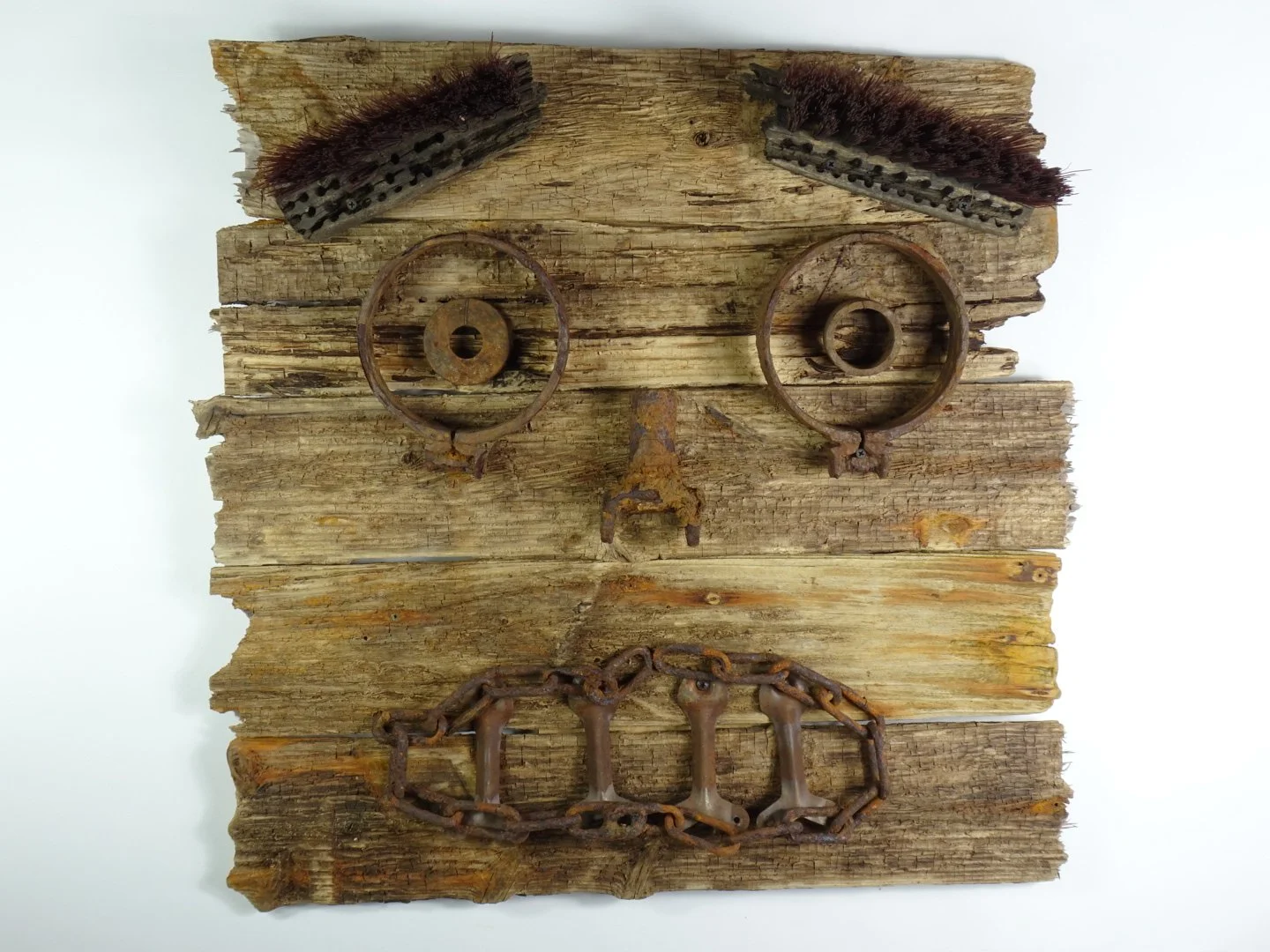Wood, Chain, Screws, Padlock, Doorknobs, Barrel Bolt, Wire, Mixed Media